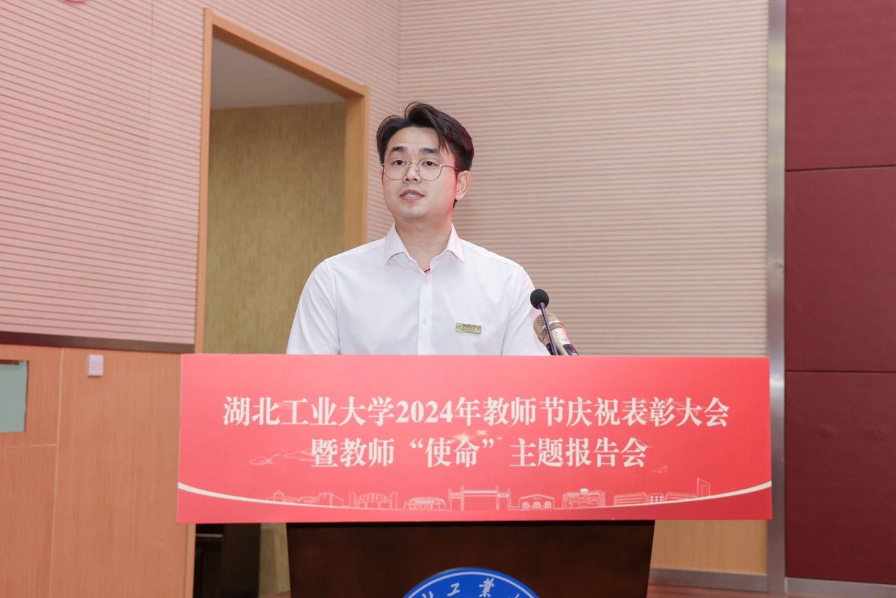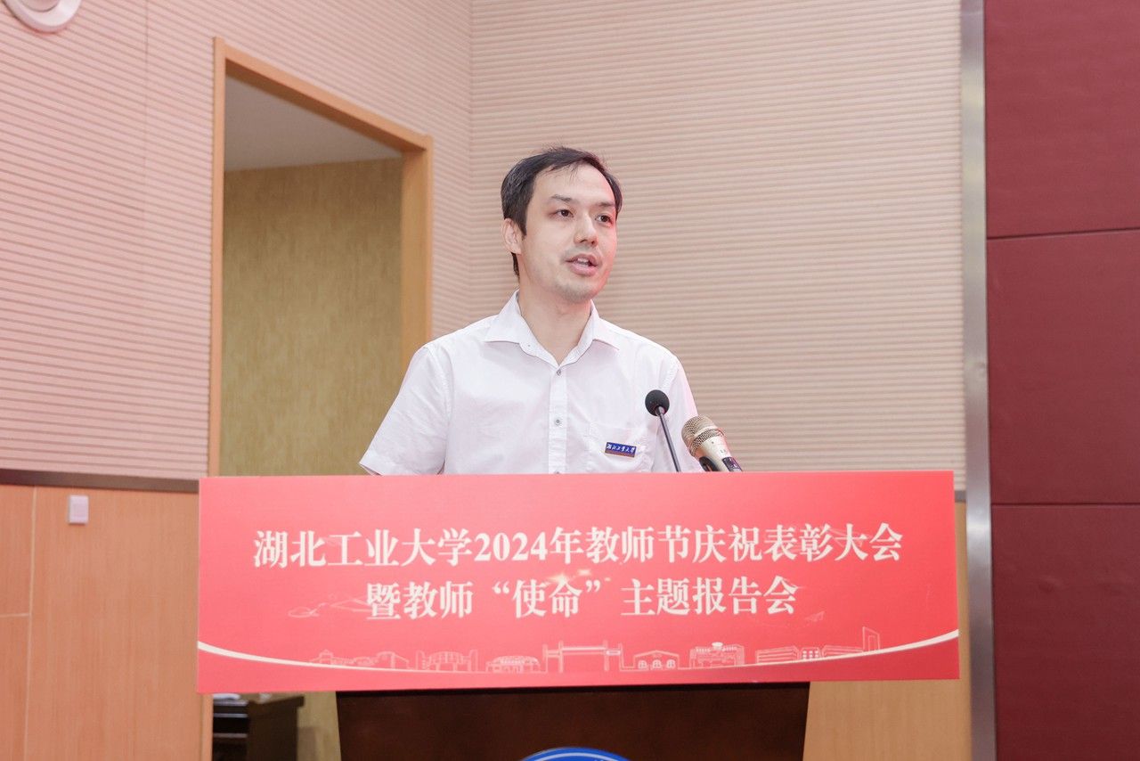 湖北十佳师德标兵、经济与管理学院孙浩老师,湖北省第四届教创赛一等奖获得者、外国语学院向玉老师,优秀辅导员代表、土木建筑与环境学院周志文老师,全国教育系统先进集体代表、生命科学与健康工程学院周梦舟老师分别作教师“使命”主题报告,分享了他们对教师职业的深刻理解和育人的宝贵经验。