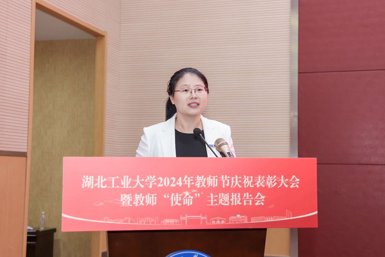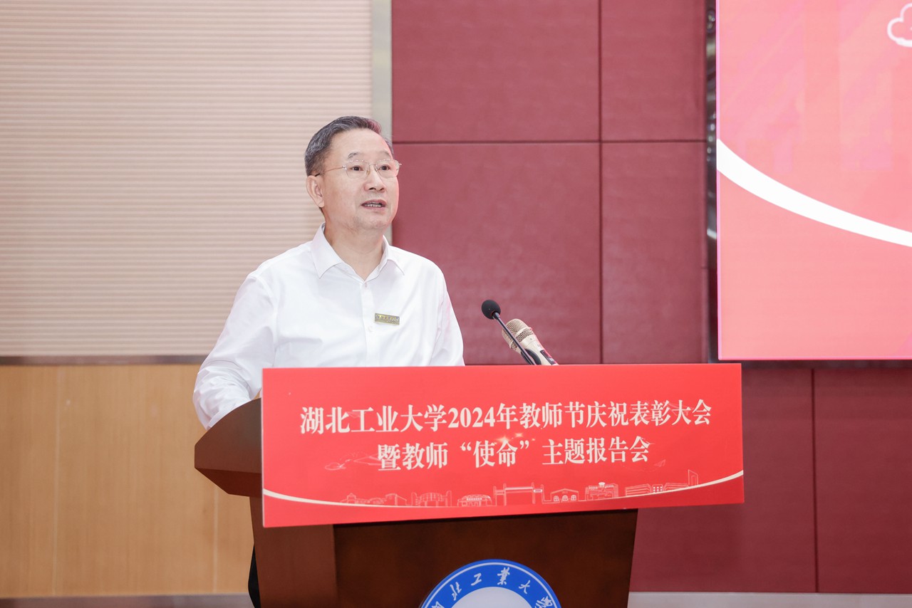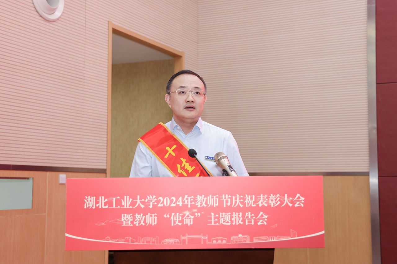 他强调学校必须始终把加强高素质专业化教师队伍建设作为育人兴校最重要的工作来抓,进一步弘扬教育家精神,持续提升教书育人能力,构建教师发展良好生态。他指出学校的教师队伍建设今后一要坚持党建引领,以教育家精神明理增信;二要塑造师德师风,以教育家精神明心崇德;三要深化制度改革,以教育家精神明责笃行。他希望全校教职工在新的征程,面对新的挑战,能够以更饱满的热情、更昂扬的斗志、更务实的作风,团结奋斗,共同谱写湖北工业大学育人兴校的新篇章!