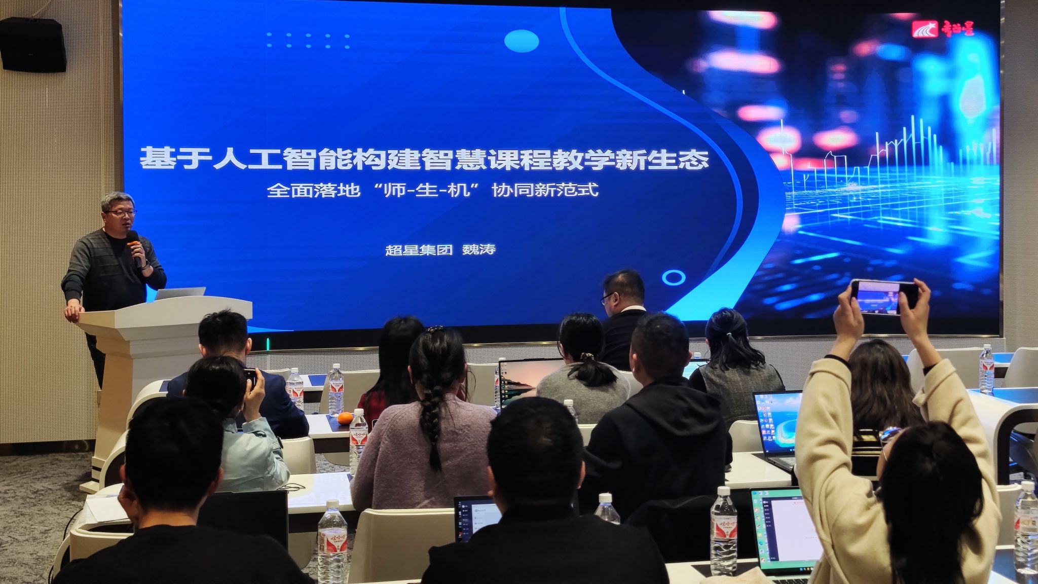 湖北超星智慧课程事业部总监魏涛主讲《基于人工智能构建智慧课程教学新生态——全面落地“师-生-机”协同新范式》专题讲座,从课程图谱构建、AI工具各场景全过程赋能教学、课程专属智能体训练到数智赋能专业建设案例分享,深入浅出地向老师们讲解了如何利用智慧课程构建全新的教学生态,为传统教学注入新的活力。讲座现场,教师们与魏涛总监就教学中的实际问题和智慧课程的应用前景等话题深入互动,围绕AI课程设计、AI助教运用等方面进行实操训练。
