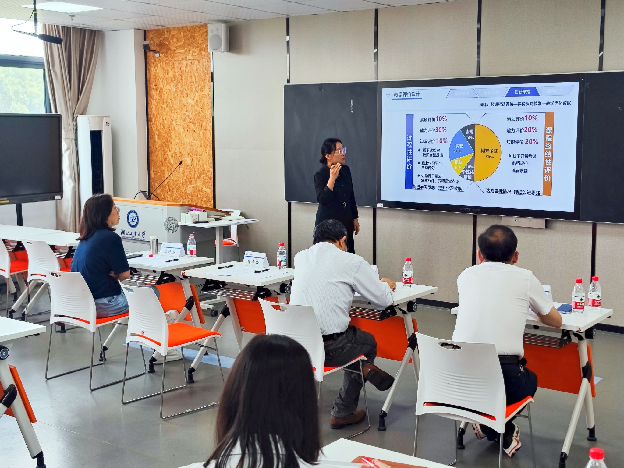 在备赛培训环节,参赛教师按实战要求,分组对照课件依次进行12分钟的教学设计创新汇报。汇报完毕后,指导专家进行8分钟的提问互动,之后再对选手逐一提出进一步完善的意见和建议。学校党委副书记胡晓艳深入各组观摩并与参赛选手进行了交流。