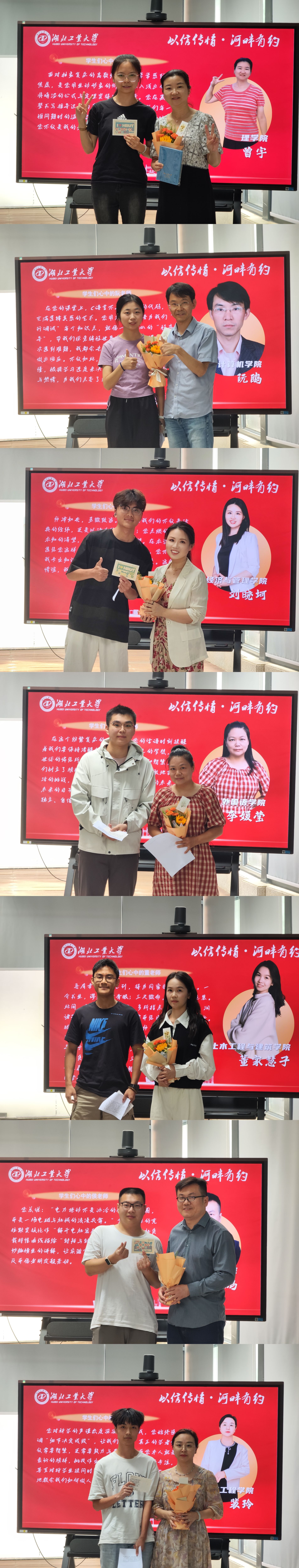 经济与管理学院刘晓坷老师:你们用青春中的一段宝贵时光,用最浪漫的信件形式,向老师们传达出了你们的感谢和鼓励。为了这份信任和鼓励,我们会勇往直前。无论湖工大的老师们是什么性格来自什么专业,我们的身份永远是你们的陪伴者和守卫者。