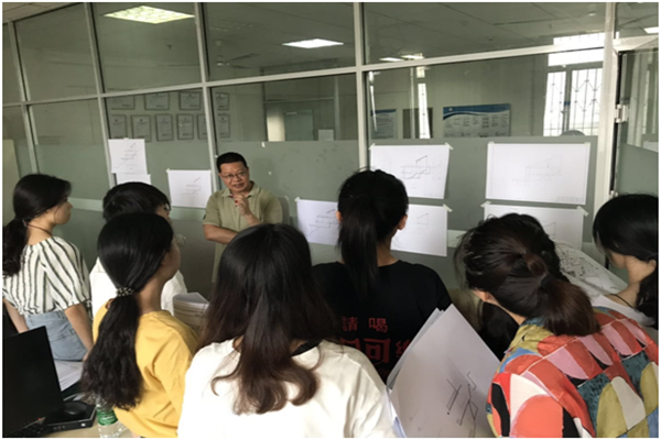 学生们自主学习的积极性被激发出来后,课堂以外的自主性拓展学习形成了浓厚的氛围。正是因为这种学习自主性,学生们从“要我学习”改变为“我要学习,”在课程教学以外,常常主动去找学长们请教。吕小彪注意到学生们的这种学习主动性,带领所指导的学生科技社团“小虎工匠”社团定期举办建筑成图科技沙龙、三维建模与虚拟现实技术讲座等社团活动,让往年参加成图竞赛的高年级学生带动低年级学生学习建筑成图与三维建模、虚拟现实知识,及时为渴望学习的低年级学生们答疑解惑,形成了以学生科技社团为平台的老生带新生“阶梯传导式学习共同体”形式,形成“时时、处处、人人皆可学”的学习好环境,同时也为土木建筑与环境学院成图竞赛选拔优秀学生参赛提供了源源不断的优质生源。